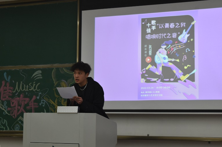 纵使云树遥隔,山川相阻,歌声的情感也一定能够通过声音传达。2022年3月24日晚,纺织服装与艺术设计分院特举办“以青春之我,唱响时代之音”主题十佳歌手大赛决赛。决赛共分两轮,第一轮由13名选手抽签随机选歌,第二轮的每位选手准备带伴奏演唱,最后根据分数依次选出一、二、三等奖及十佳歌手。