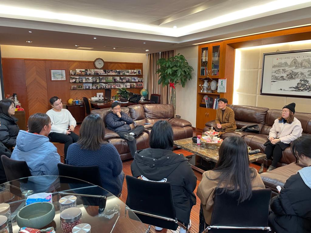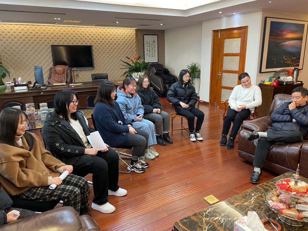 随后,楼院长与实习学生进行了深入交流,关切地了解学生实习期间的生活、学习、工作情况,强调了实习安全的重要性,希望学生珍惜博雅服饰有限公司提供的平台,珍惜学习机会,鼓励实习学生发扬吃苦耐劳、积极进取的精神,在公司施展自己的才能。