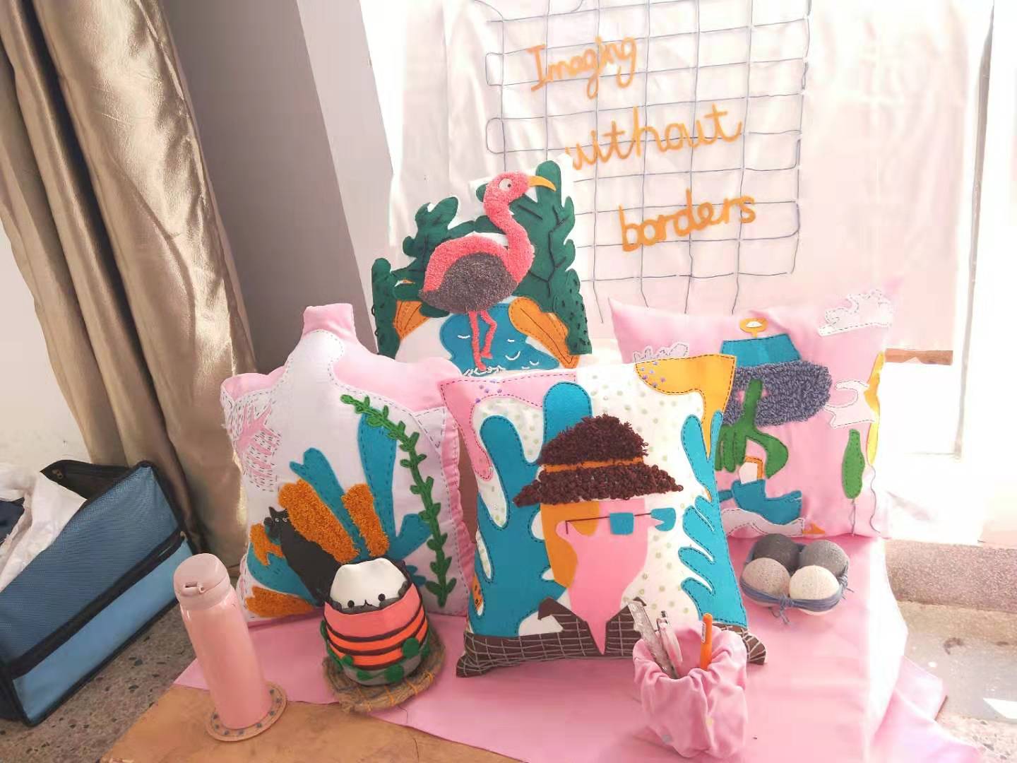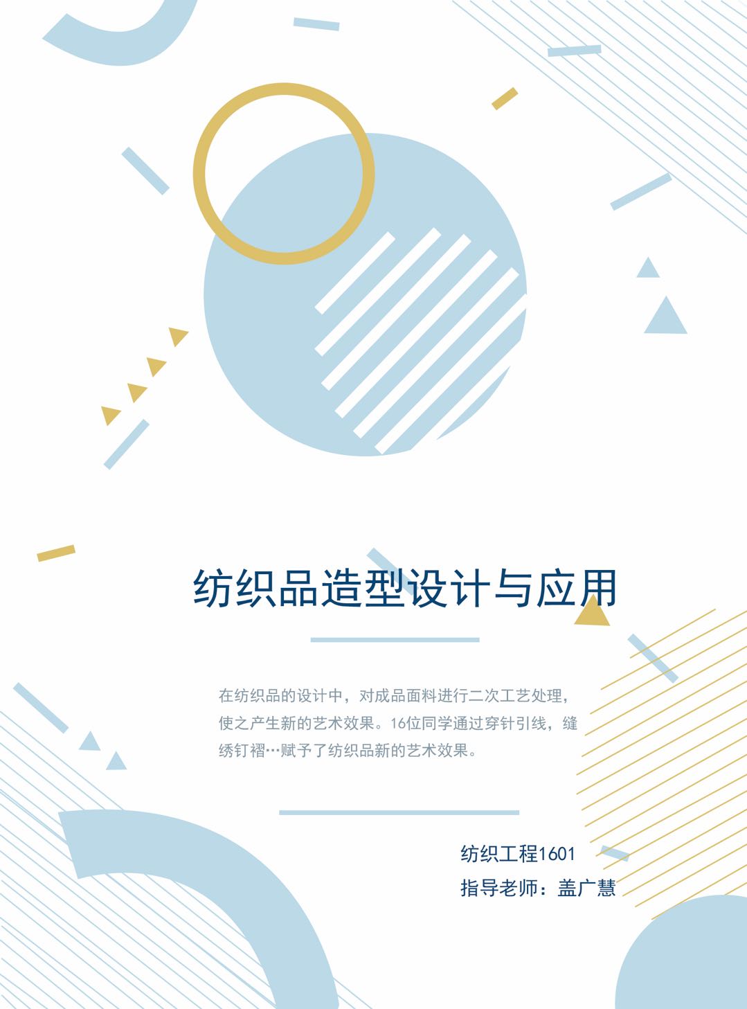 在本课程中,同学们发挥想象力,展现个性,灵活运用刺绣、拼贴、花饰等加法型手法,剪切、镂空等减法型手法和折叠、褶饰等变形手法,对平面单调的纺织品面料进行艺术改造,使之被赋予新的艺术生命力和表现力。同学们也在这个过程中获得艺术审美的培养和提高,同时设计能力也得到锻炼。以下请欣赏本课程学生作品展览。