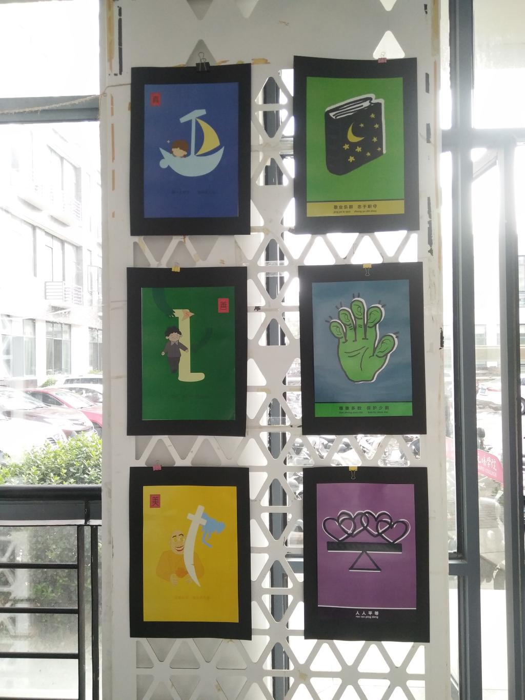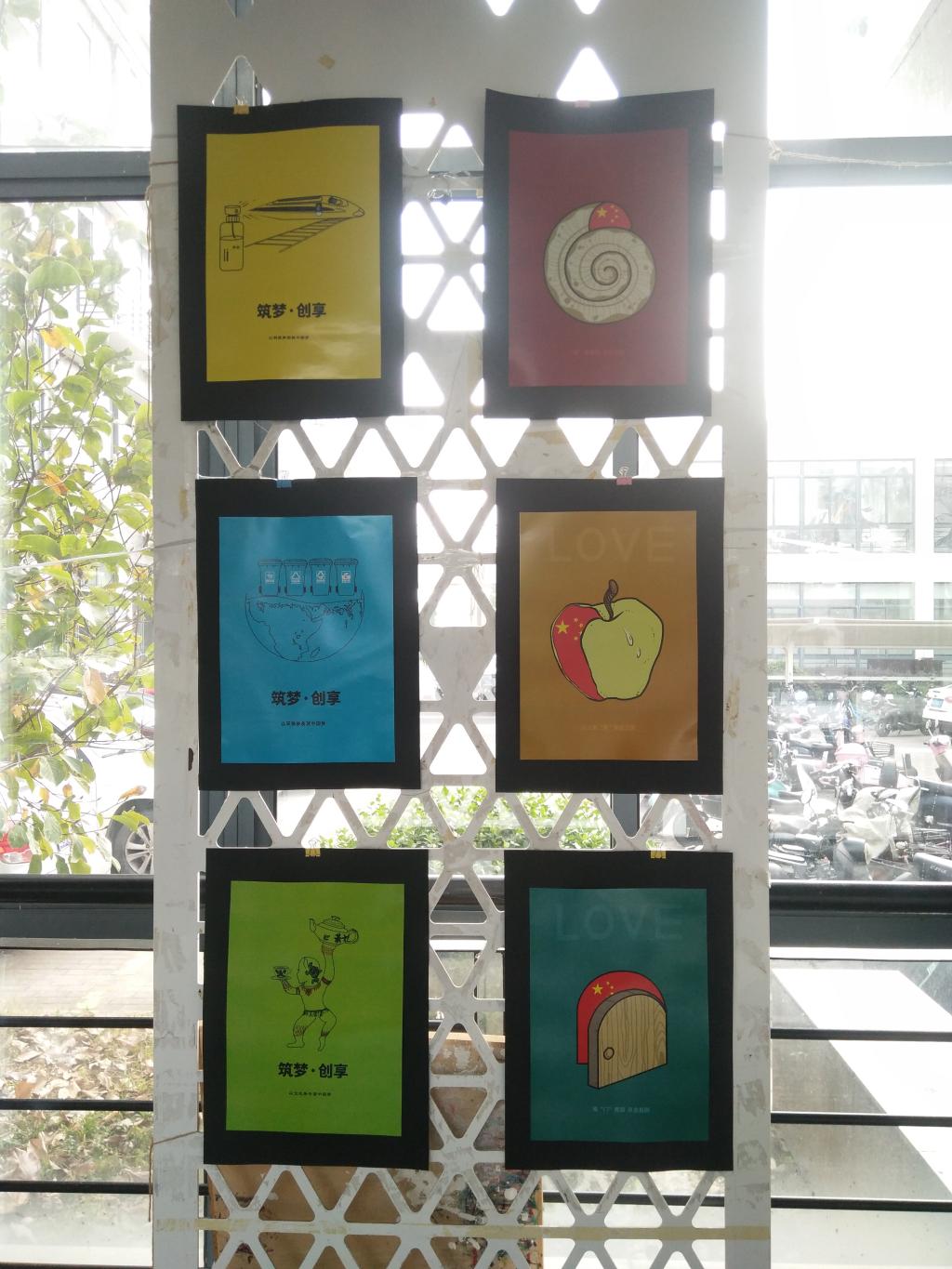 本次展览作品为视觉传达1811班的课程大作业,大作业的内容正是绍兴市第三届大学生文创产业与艺术设计大赛公益海报设计主题——“筑梦•创享”。同学们在设计过程中,充分挖掘主题内涵,寻找与主题相关的元素,进行丰富的想象创作,设计出许多优秀的作品,在这些作品中选送了8位同学的作品参加比赛,其中2人获得了二等奖,5人获得了三等奖的好成绩。