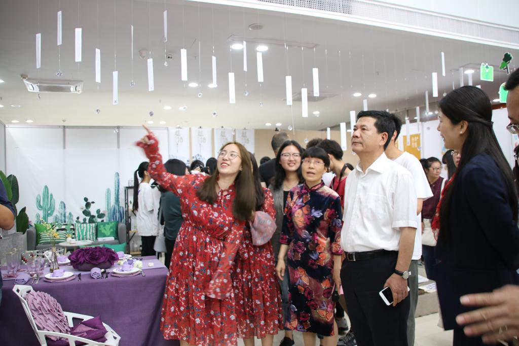 5月21日上午,2018届艺术设计毕业作品展在国际文化交流中心举行,来自视觉传达设计、环境设计二个专业方向的近100位学子毕业作品在此展出。学院副院长叶访春、石旭明,绍兴花为媒集团有限公司副总经理张书岭,国家纺织面料馆董事兼常务副总经理王苏芳,绍兴第六空间国际家居商场总经理孙恩仕及艺术设计行业社会相关人士,纺织服装与艺术设计分院全体师生等参加了开幕式。
