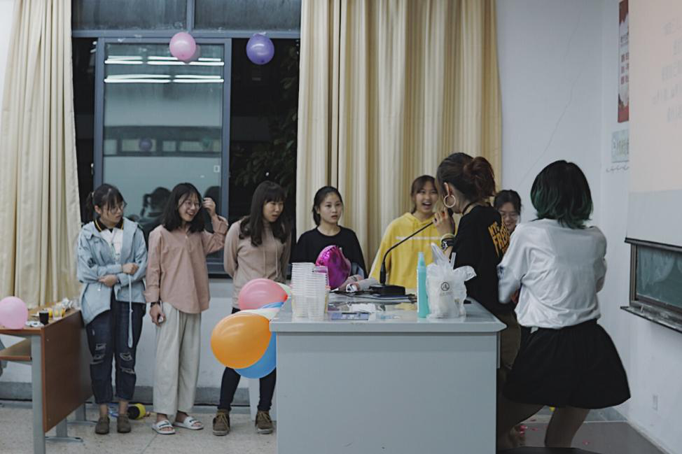 在斗地主欢快的音乐中,击鼓传花正在新老生中激烈进行,作为花朵的帽子在人群上空一次次划出优美的弧线。“鼓声”不时骤停,人声也随着帽子的起落跌宕起伏,一次次引得新生的欢呼呐喊,将此次的新老生交流会推向了又一个高潮。