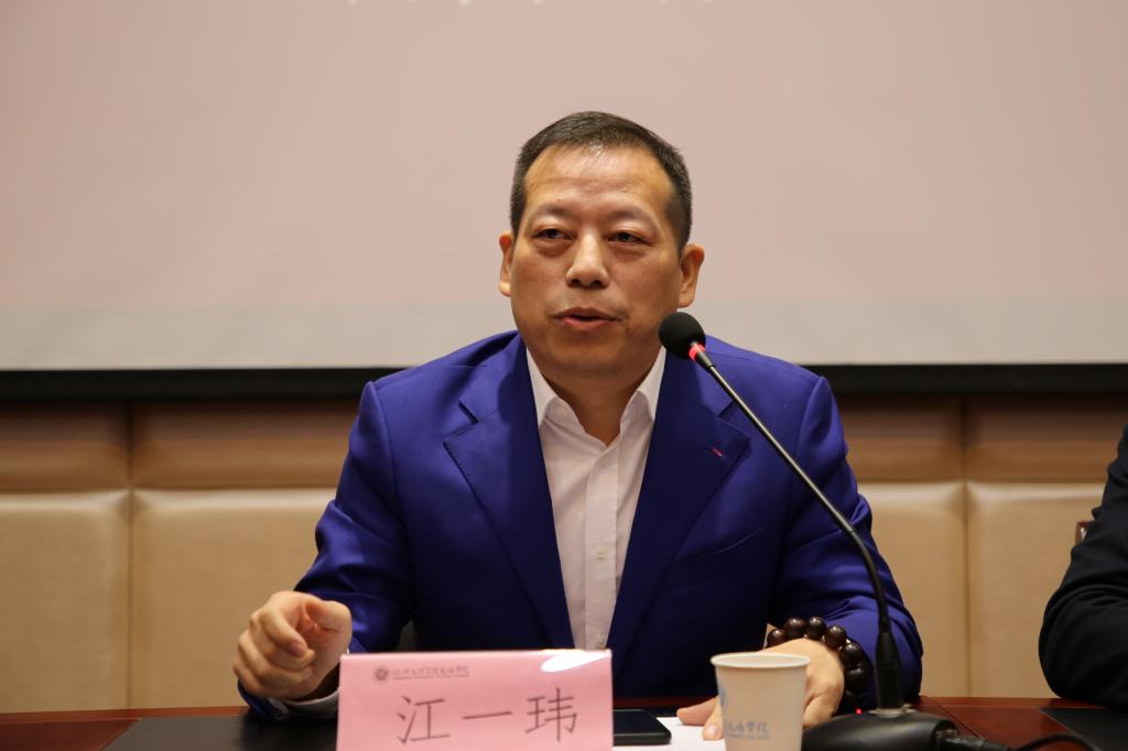 学院党委副书记宣海江代表我院对各企业代表出席会议表示热烈的感谢。他表示,在绍兴纺织行业的大环境下,学院将继续注重人才培养再发展,进一步研究市场需求、积极发展多元化的招生渠道,坚持学院办学定位,推动创新创业学院发展。我院作为高水平国际化应用型独立学院,离不开校企合作,产教结合,只有产业行业才是时代发展、市场需求的脉动所在,要不断深化合作,积极发展平台建设。同时,宣海江希望同学们不断提升专业能力、优化专业素质,从而实现实习践行、实习效能和积极性的再提高。