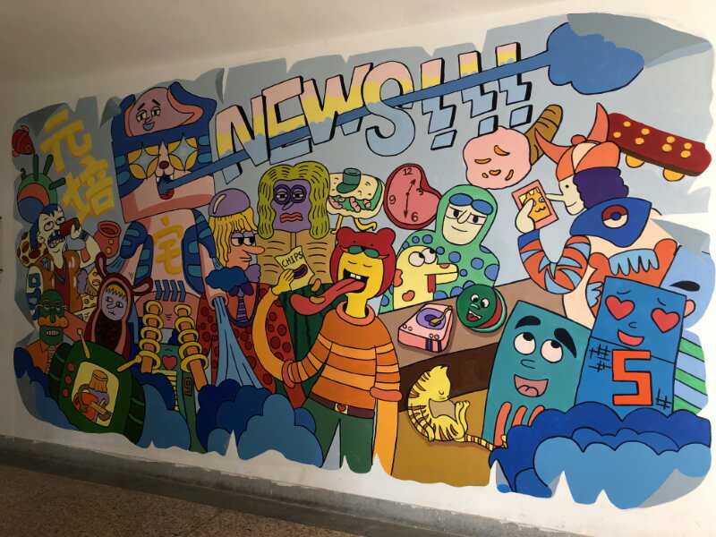 除以上两幅作品外,本次墙绘活动的作品还有胡洪瑞等同学绘制的《大学生活》