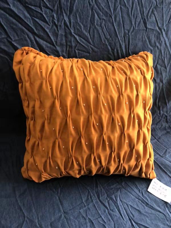 此抱枕将变形法与加法型手法相结合,整体采用立体褶饰,并用小珠子加以装饰,简单又雅观。