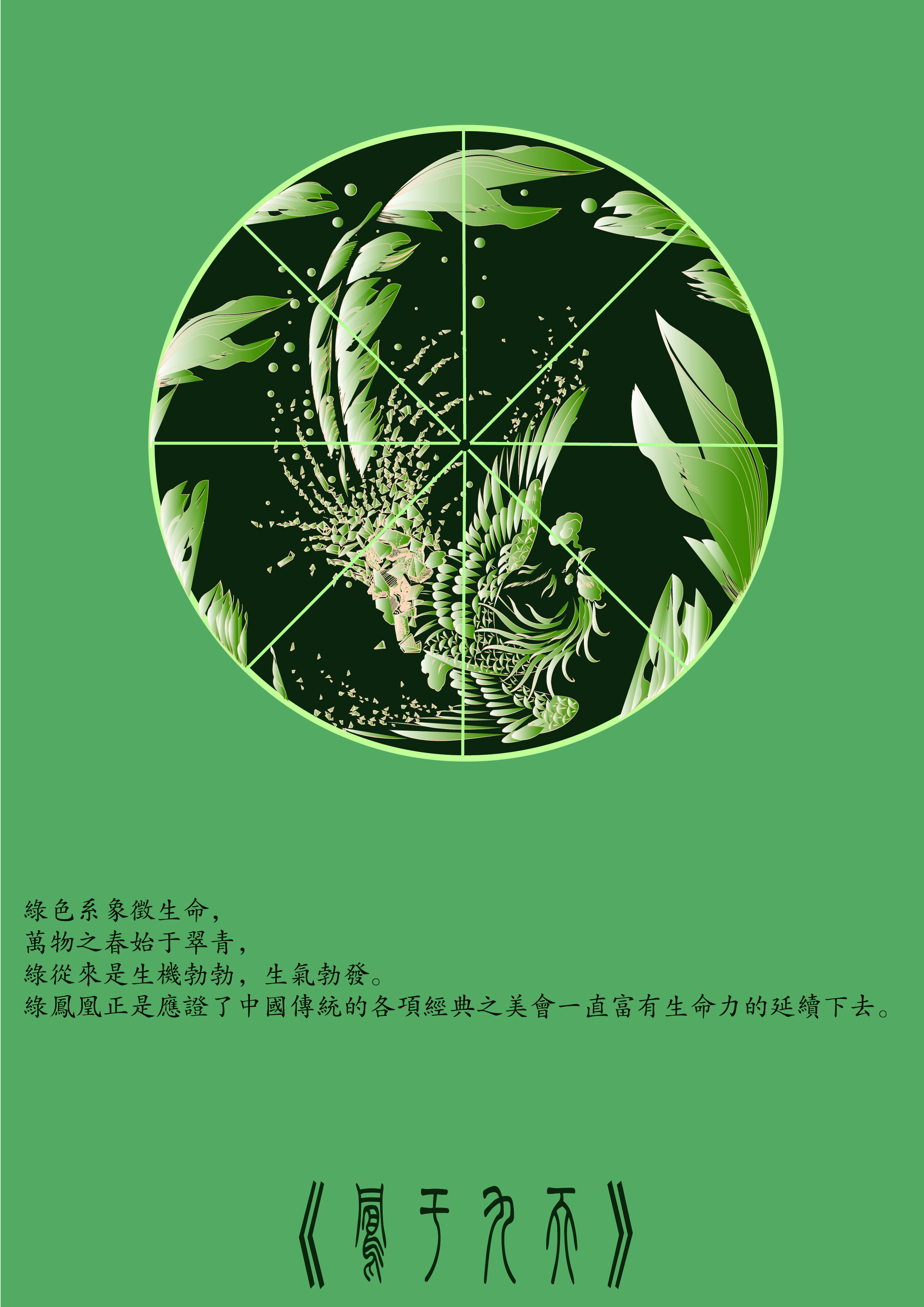 绿色系象征生命,万物之春始于翠青,绿从来是生机勃勃,生气勃发。绿凤凰正是应证了中国传统的各项经典之美会一直富有生命力的延续下去。