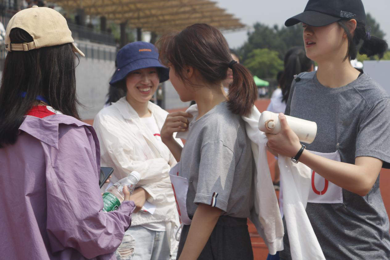 二十六摄氏度的高温也磨灭不了同学们观赛的热情。在比赛正式开始前,纺服分院的同学们都早早到场入座,每个人都准备了运动会的加油稿,每个人都为运动员献上了最真诚的鼓励。一声枪响后,在观众席上的同学们便由学生会的干部们带领着为他们呐喊助威,喊声一阵高过一阵,响彻云霄!而纺服的运动员们也感受到了来自分院老师同学的鼓舞,一个个铆足了劲快速冲过终点线。