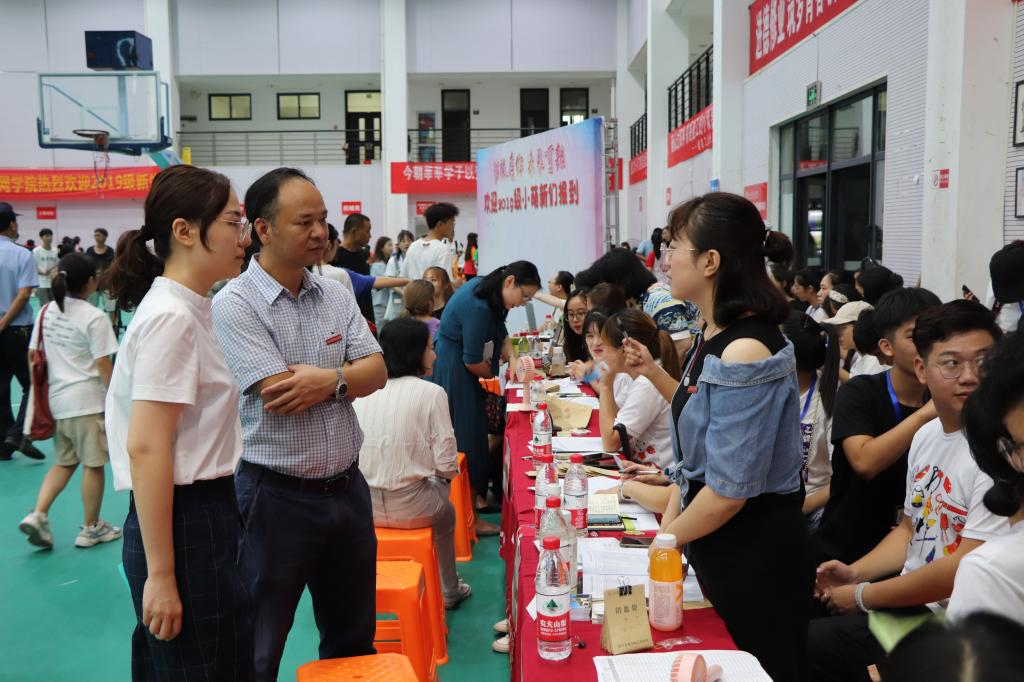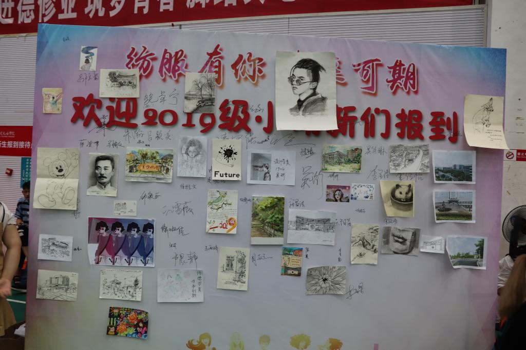 学院党委副书记石旭明,分院院长楼利琴等亲临迎新工作现场进行视察指导,并与师生和家长进行了亲切交流,在迎新现场,纺服分院的背景墙贴满了新生的画作和签名,他们用画笔画出入学的喜悦,画出对大学的期盼。此次迎新,纺织服装与艺术设计分院注重创新、强化教育、充满温馨。一是教育内容前置,使新生提前认识老师了解大学。迎新期间,分院精心制作了《2019级新生家长温馨提醒》,家校联动有效指导学生。二是运用网络技术,确保信息对称、及时、准确。暑假期间,建立年级QQ群和微信群,加强新生与学校、新生与新生之间的互动。三是强化安全教育,保障新生权益。四是加强服务保障,确保每一名新生顺利入学。