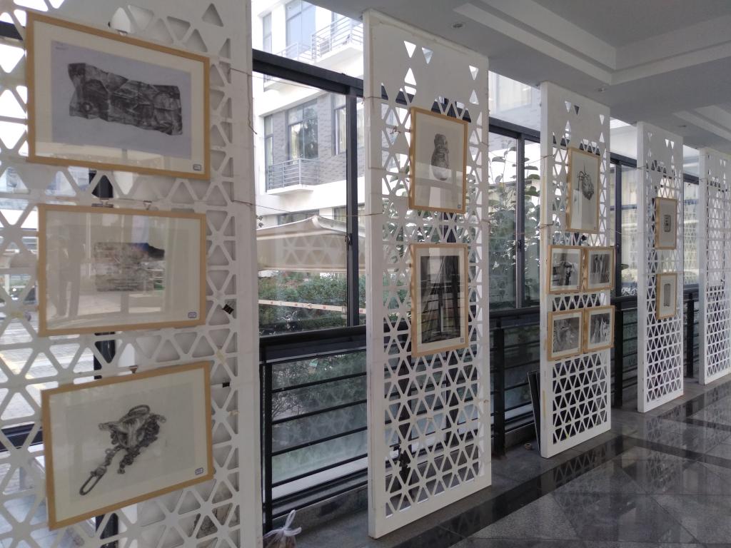 《素描》课程作品展布置在教学楼五、六幢之间的大厅。参展作品为设计19班部分学生作业,以抽象素描与超写实素描为主。同学们在李丰老师的带领下对抽象素描这一概念有了全新的,多方位的认识。同时也经历了超写实作业的磨练,笔下的细致度,作品的表现力都有了显著的提升。