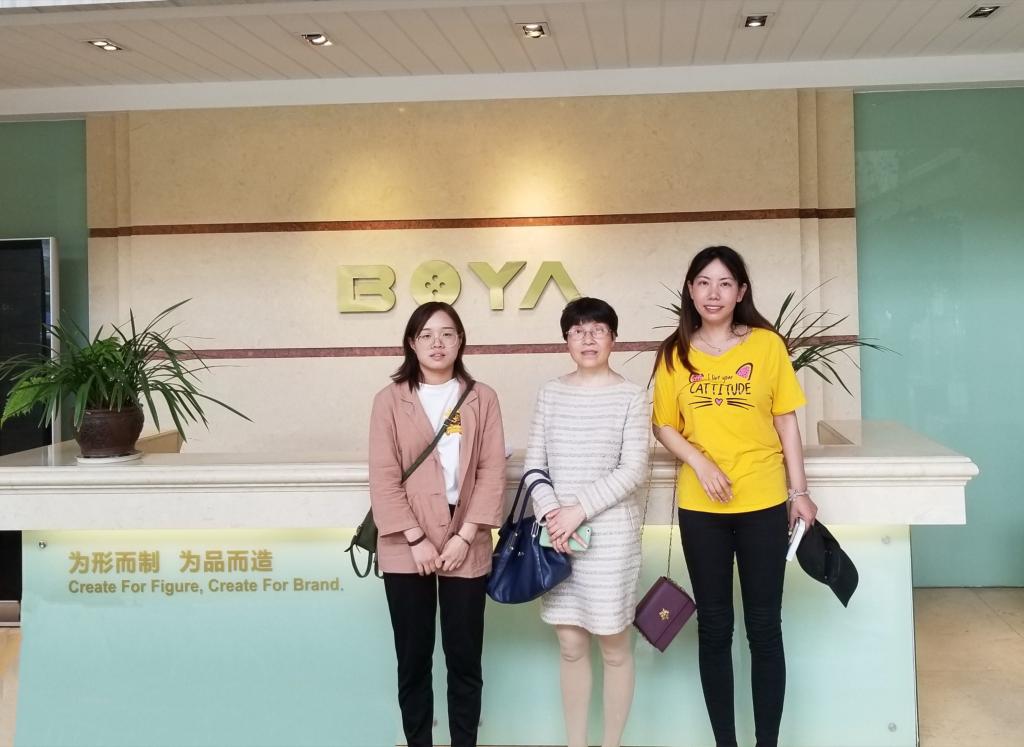 5月11日下午,楼利琴院长带队前往绍兴博亚服饰有限公司,看望第一届个性化服装智能定制工程师班实习学生。