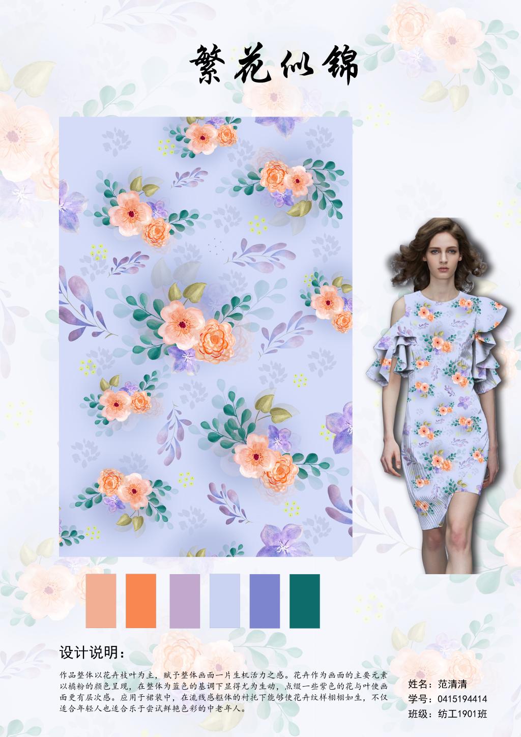 近日,纺织工程1901班同学在教学楼五、六号楼的展厅进行了《面料花样设计》课程作品展。