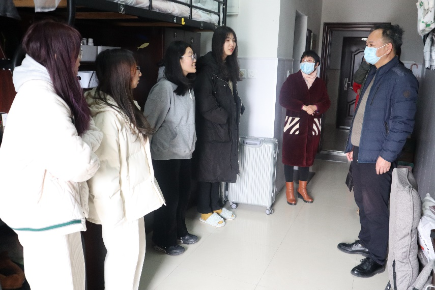 新学期伊始,为更好地了解同学们的住宿环境和生活情况,2月20日下午,学院党委副书记石旭明在纺服分院楼利琴院长、葛丛栩书记一行人陪同下走访了学生寝室。