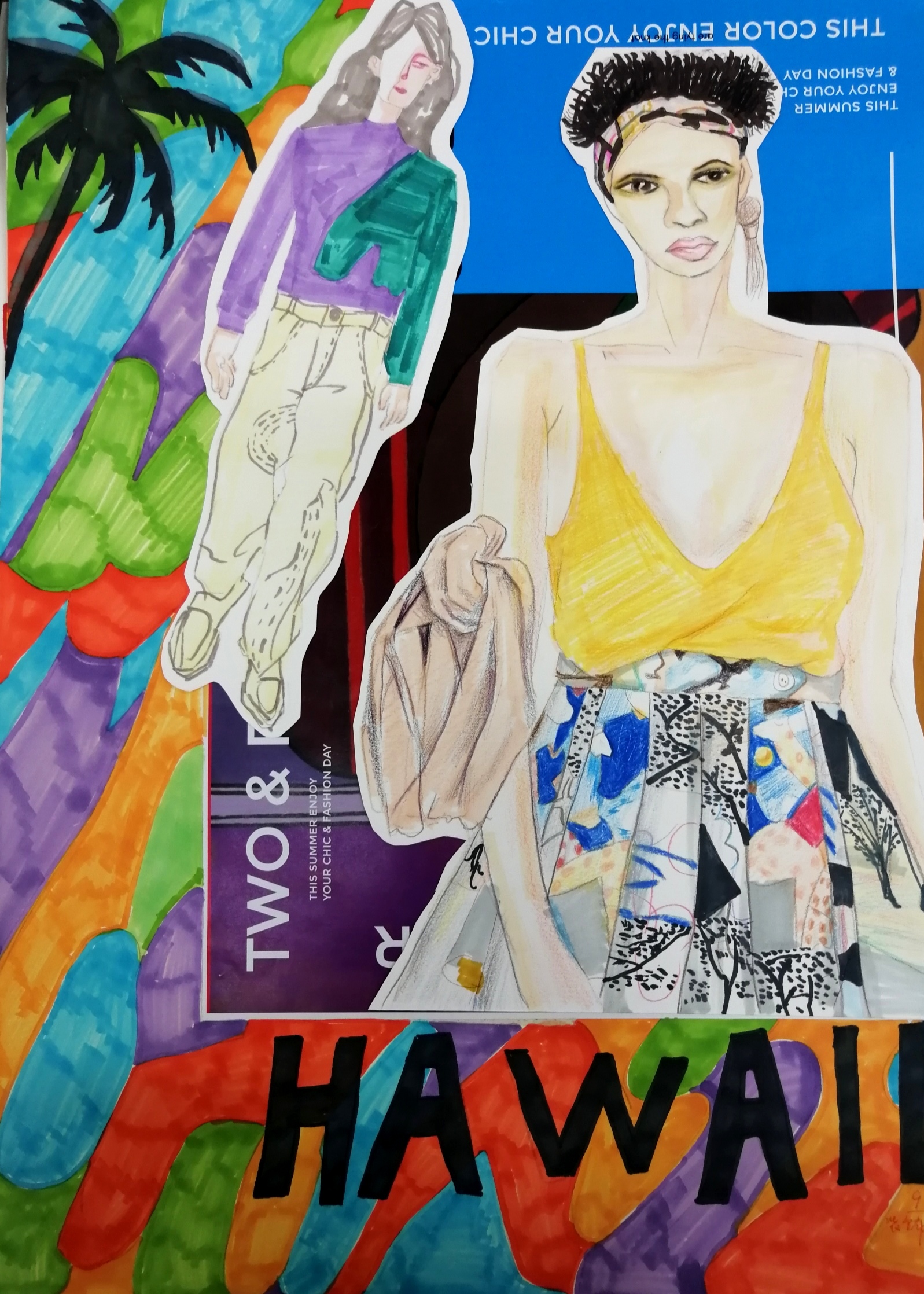 时装画海报风格也可能是未来工作单位需要的风格,可以跨越空间和时间,利用艺术手法拉近不可能拉近的距离,可以训练学生发挥想象力,时装画技法课程作为是服装设计专业的的一门重要课程,主要考查学生的绘画能力、整体审美能力、服装与服饰搭配能力。学生从认真学习,积极创意,践行着“工匠精神”,也许作品还显得幼稚单纯,这正是青春的记忆,人生值得回忆的作品展示。真心希望为每个观者带来愉悦的心情。每个作品也都代表着每位同学某一阶段的设计风格,是作品与人之间心灵的对话,诚挚的希望能够引起观者的共鸣!