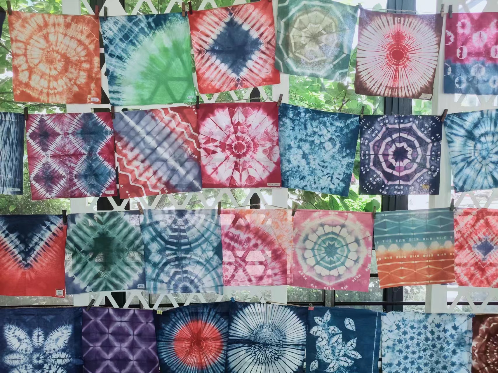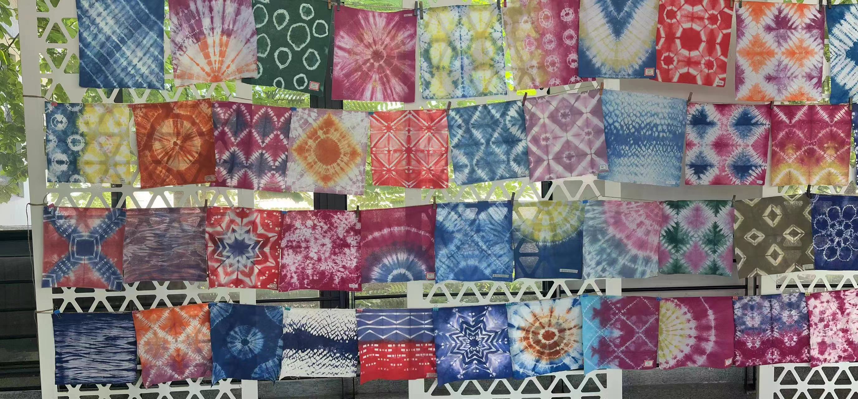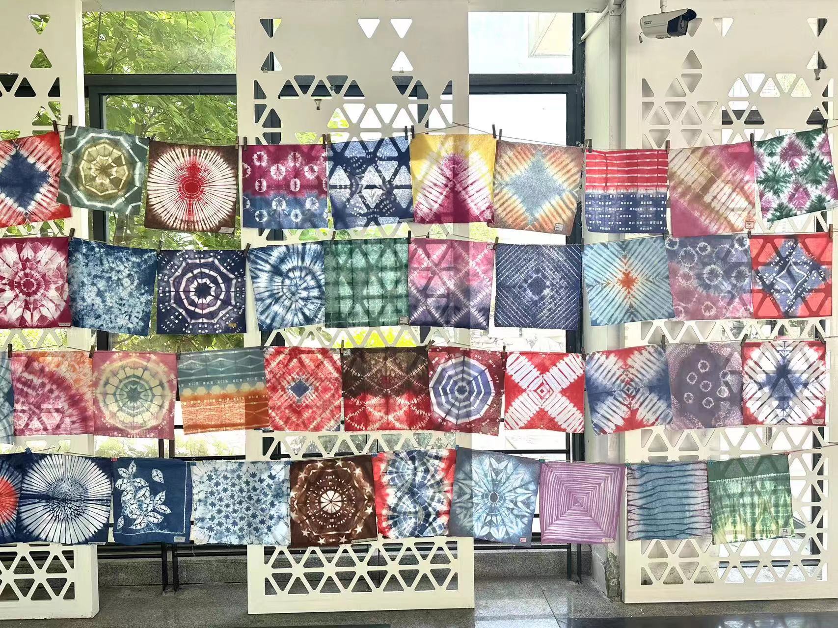 近日。我分院环境设计2101班完成了扎染工艺的课程学习,举办了一场扎染工艺的课程展出,在教师盖广慧的指导下,同学们学习了叠扎、捆扎、夹扎、缝扎、工具夹扎等方法,该课程属于专业选修课程,侧重于加强学生的动手能力,提高创新力,要求同学们在学习的过程中了解扎染然这项非遗工艺,让同学们通过图像识读,能够认识和鉴赏传统扎染的不同艺术特点。理解靛蓝扎染图像蕴含的独特美感,领悟扎染的独特价值,增强文化自信。让学生通过自主探究,掌握扎染中的捆扎法,夹杂法等基础技法,学会运用工具和材料按照扎染工艺流程进行艺术创作,形成使用扎染语言进行设计和制作的能力,认识扎染的造型及色彩工艺的制作魅力,为后续的专业图案设计奠定基础。此次课程作品展出了学生们的平时作业与大作业,展现了同学们对该课程较强的动手能力与创新能力以及对课程的充分认识与熟练掌握。