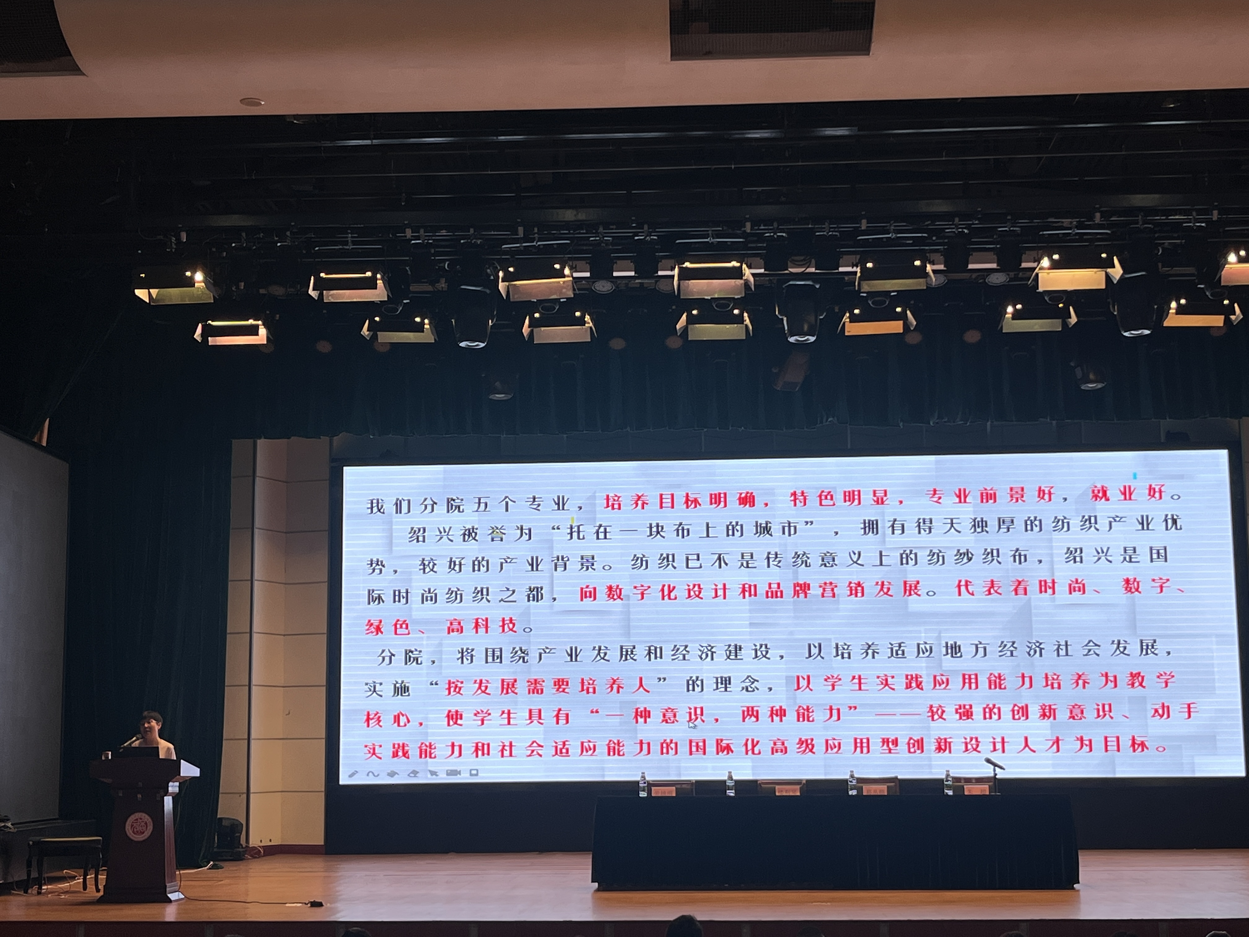 迎新大会伊始,分院院长楼利琴教授对全体新生加入纺服大家庭表示了热烈欢迎与诚挚问候。在新生班主任聘任仪式后,院长楼利琴围绕着“专业学科”、“实践条件”、“教师队伍”、“人才培养”、“学生成果”等五个方面和新生们分享纺服分院的优秀学习环境,讲解了纺服分院建设的定位使命、发展愿景和人才培养目标及理念。