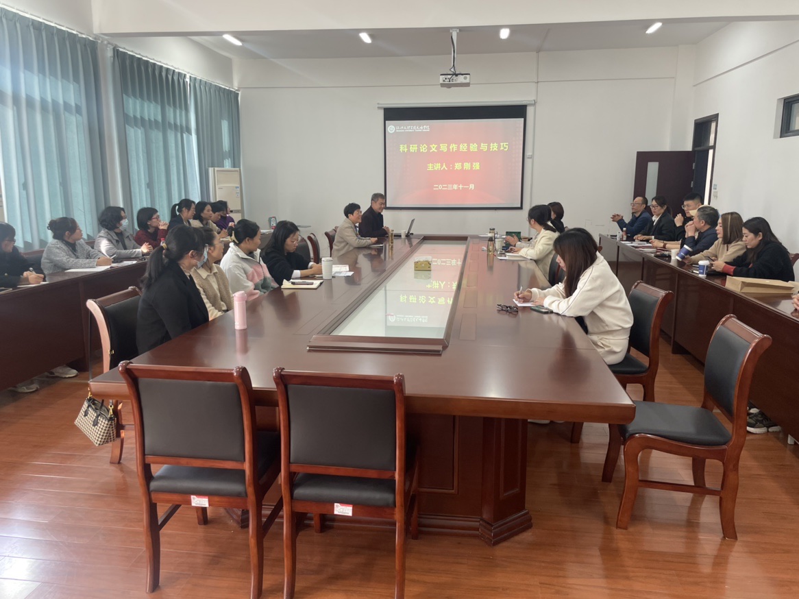 11月21日下午,武汉理工大学郑刚强教授应邀来我分院做题为《科研论文写作经验与技巧》的学术讲座。分院相关教师参加讲座,讲座由分院院长楼利琴主持。