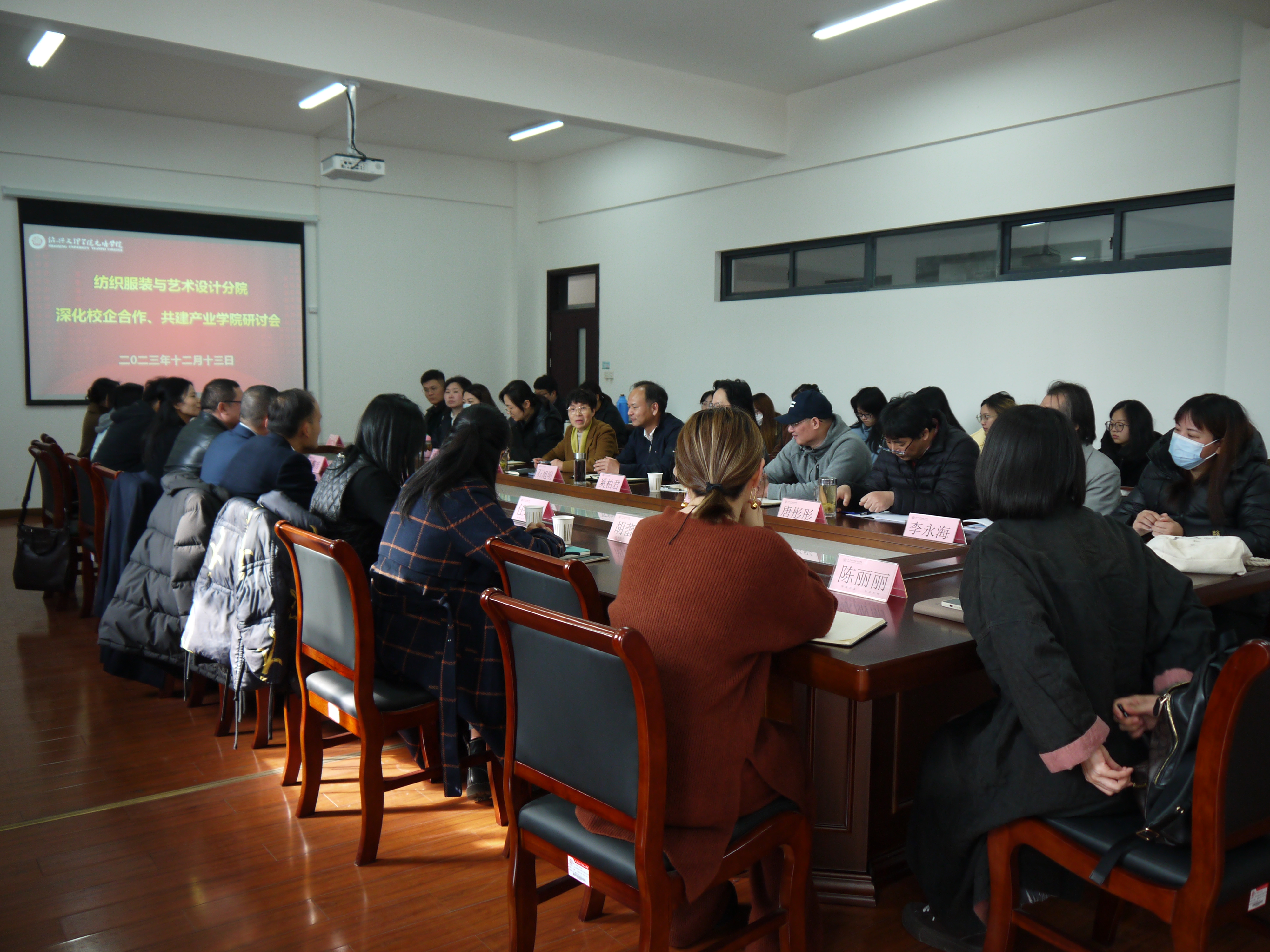 为进一步推动产业学院建设,应对数字经济产业发展新动态、新形势,培养适应和引领现代产业发展的高素质应用型、复合型、创新型人才,12月13日下午,分院深化校企合作暨共建产业学院研讨会在6号楼201会议室召开。学院党委副书记石旭明、教学总督导奚柏君、国家面料馆馆长王苏芳、绍兴市中小纺织企业促进会秘书长王利生、绍兴永俊纺织品有限公司董事长施建海等企业家代表、分院部分师生出席了此次会议,会议由分院院长楼利琴主持。