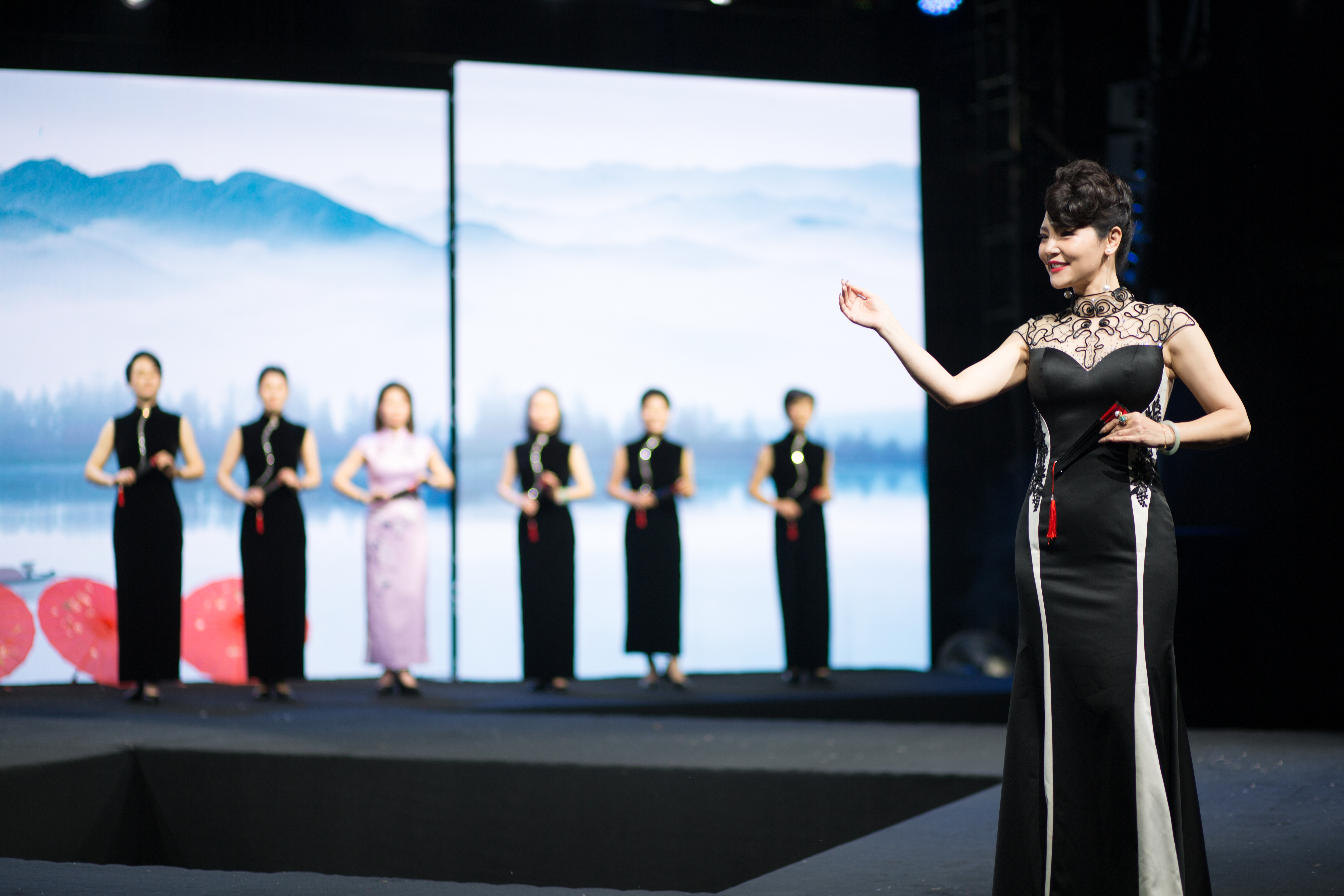 活动下半场,由绍兴文理学院旗袍协会带来的旗袍秀,在艺术碰撞的巨大浪花中,更像是一股涓涓流水,演绎着中式风格的无限风情与魅力,传递着独属于中华优秀传统文化的韵味。