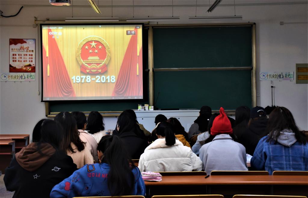 12月18号上午十点整,纺织服装与艺术设计分院组织党员师生观看“庆祝改革开放四十周年大会”电视直播。