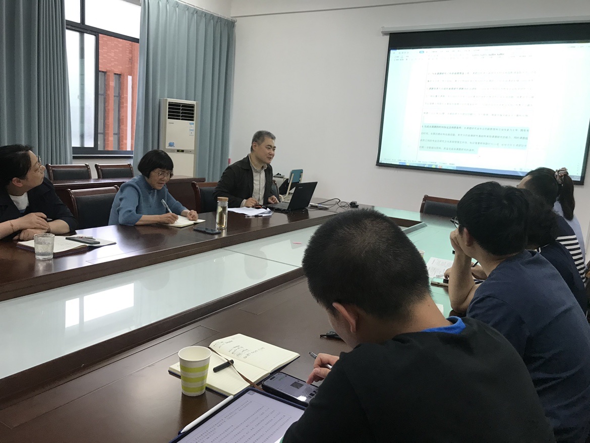 郑教授先从字体、行间距、图片的插入、小标题的书写等文本的规范程度进行讲解。随后,他结合自己多年申报和评审经验,阐述了省社科基金申报倾向性以及如何从社会热点问题中提炼出一些选题,然后结合大量的具体实例,从选题依据、研究内容、思路方法、重点难点、创新之处、预期成果、参考文献、研究基础等八个要素向老师们讲解省哲社项目申报书填写注意事项和细节。准备申报课题的老师分别就申报选题和研究思路进行了汇报,郑教授耐心的倾听,并对各位老师存在的问题一一进行了解答和讨论。