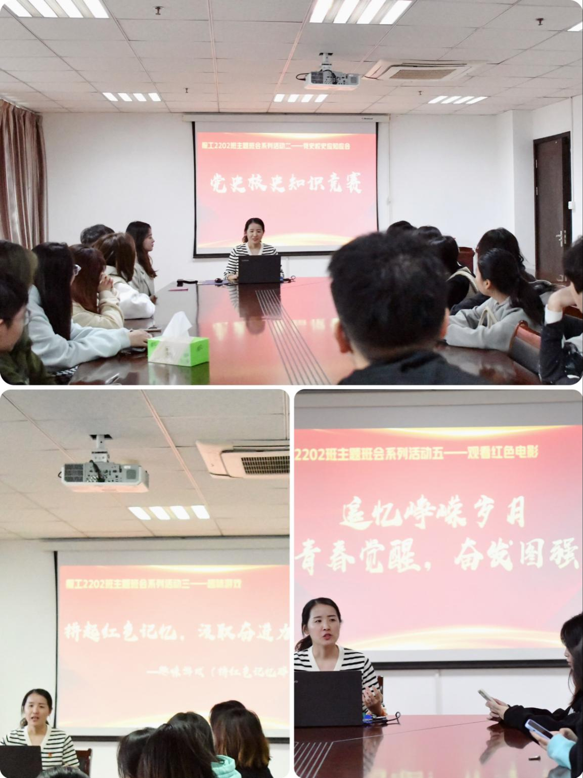 围绕活动主题,立足学生发展,班主任组织开展“青春逢盛世,奋进正当时”的主题班会。通过“党史校史应知应会”知识竞赛、“拼起红色记忆,汲取奋进力量”趣味游戏和“忆往昔峥嵘岁月,奋楫扬帆启新程”观影等活动,勉励同学们筑牢理想信念根基,引领青年大学生扣好人生第一粒扣子,坚定不移跟党走,努力争做新时代好青年。